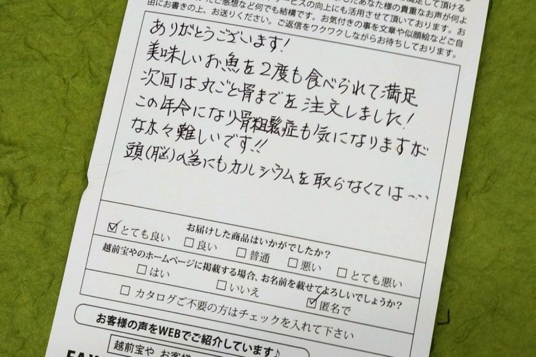 今回は丸ごと骨までお召し上がりいただける商品をご注文いただき、ありがとうございます。